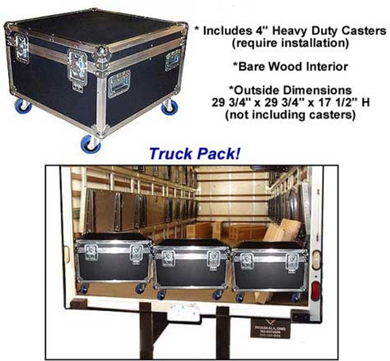 This heavy duty Signature 30" x 30" Cable Trunk Case (standard height) is a solid, high quality ATA truck case that makes a perfect cable trunk. The cable trunk cases come with 4" casters that are easy to attach, and have a bare wood interior that can be lined with foam if desired. The cable trunk cases are also designed with many features that further improve both durability and functionality, and enable them to be stacked or stored easily next to each to save space in storage or shipping. Shipping includes delivery on the truck to your curb/dock and does not include any "liftgate" fees for unloading. We ship to Hawaii & Alaska as well as internationally, but can only provide free shipping to the lower 48 US states at this time. Please email, phone or text us for a quote for air, expedited, and international delivery options.