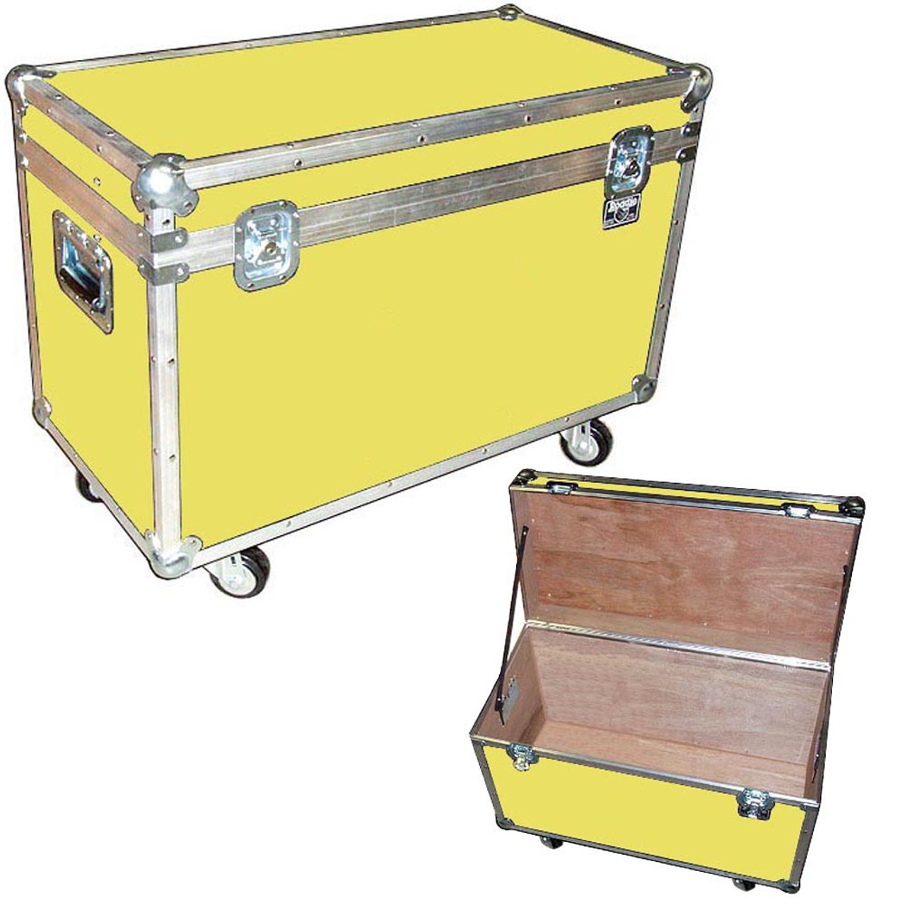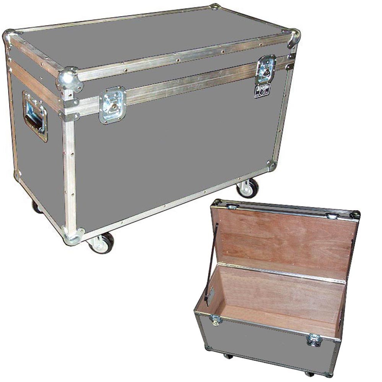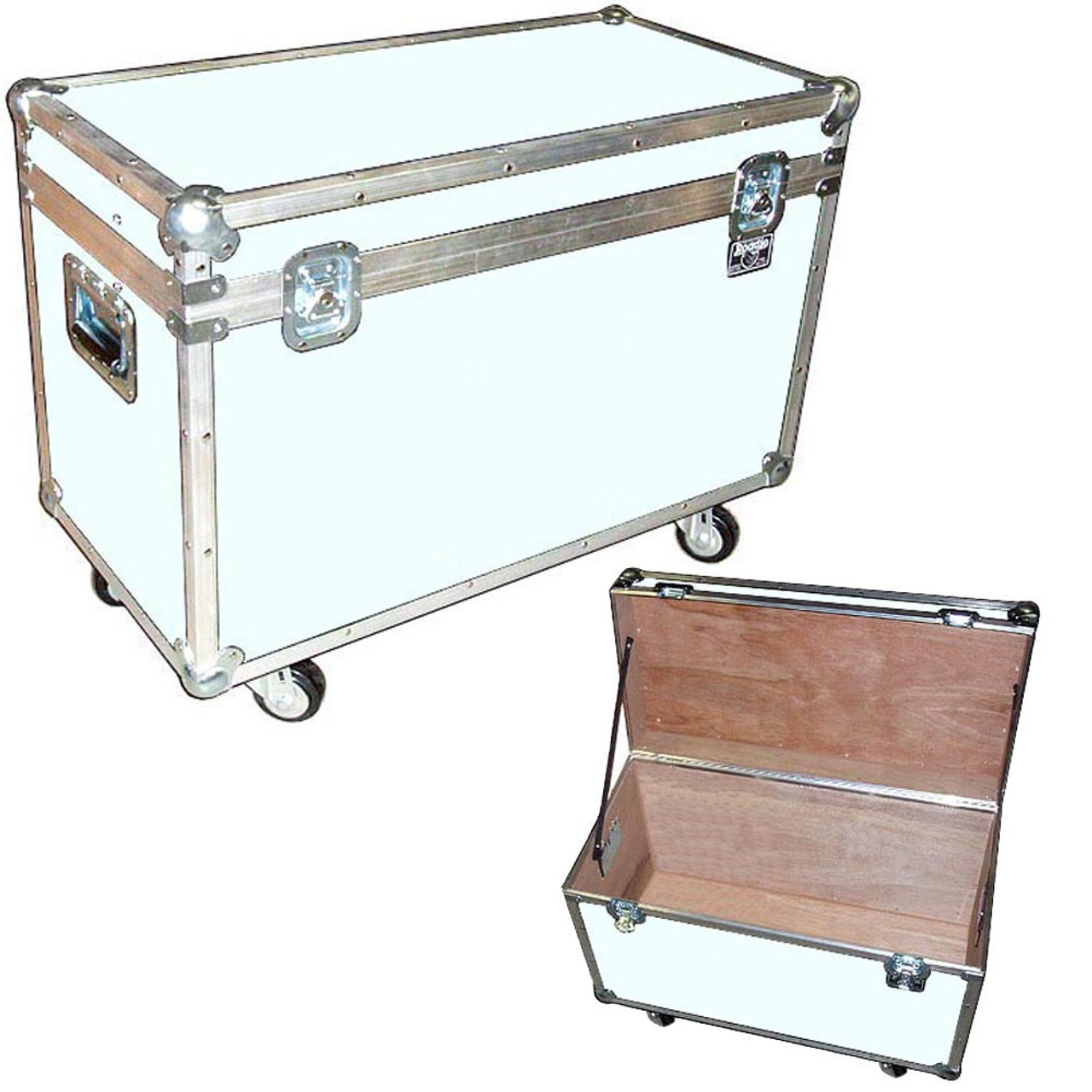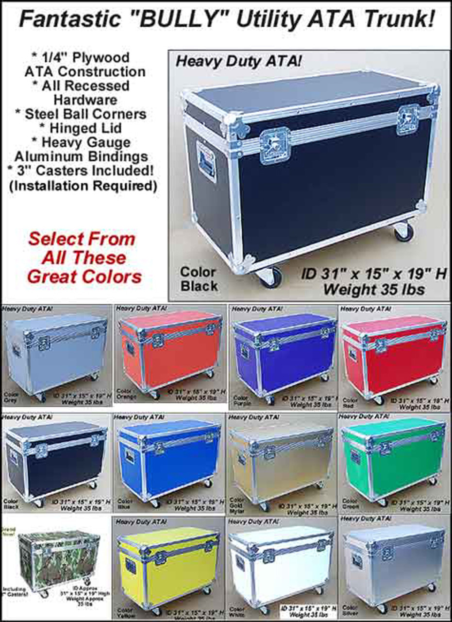 Our roadie utility cases are constructed with 1/4" plywood and thick plastic laminate exterior with a a bare wood inside. A sheet of foam is supplied for your own customizing use. The case is made with heavy gauge aluminum extrusions which are machine split riveted all over. Its corners are protected by steel ball corners. All catches and handles are spring loaded and recessed for added strength and shear resistance. These handles and catches are specially designed for a tight positive closure and easy lifting capability. The lid hinges on our 31” ATA utility trunk with wheels that open easily and the case also boasts heavy duty 3" swivel casters which are mounted to the bottom. The inside dimensions are 31" x 15" x 19" high. We ship to Hawaii & Alaska as well as internationally, but can only provide free shipping to the lower 48 US states at this time. Please email, phone or text us for a quote for air, expedited, and international delivery options.