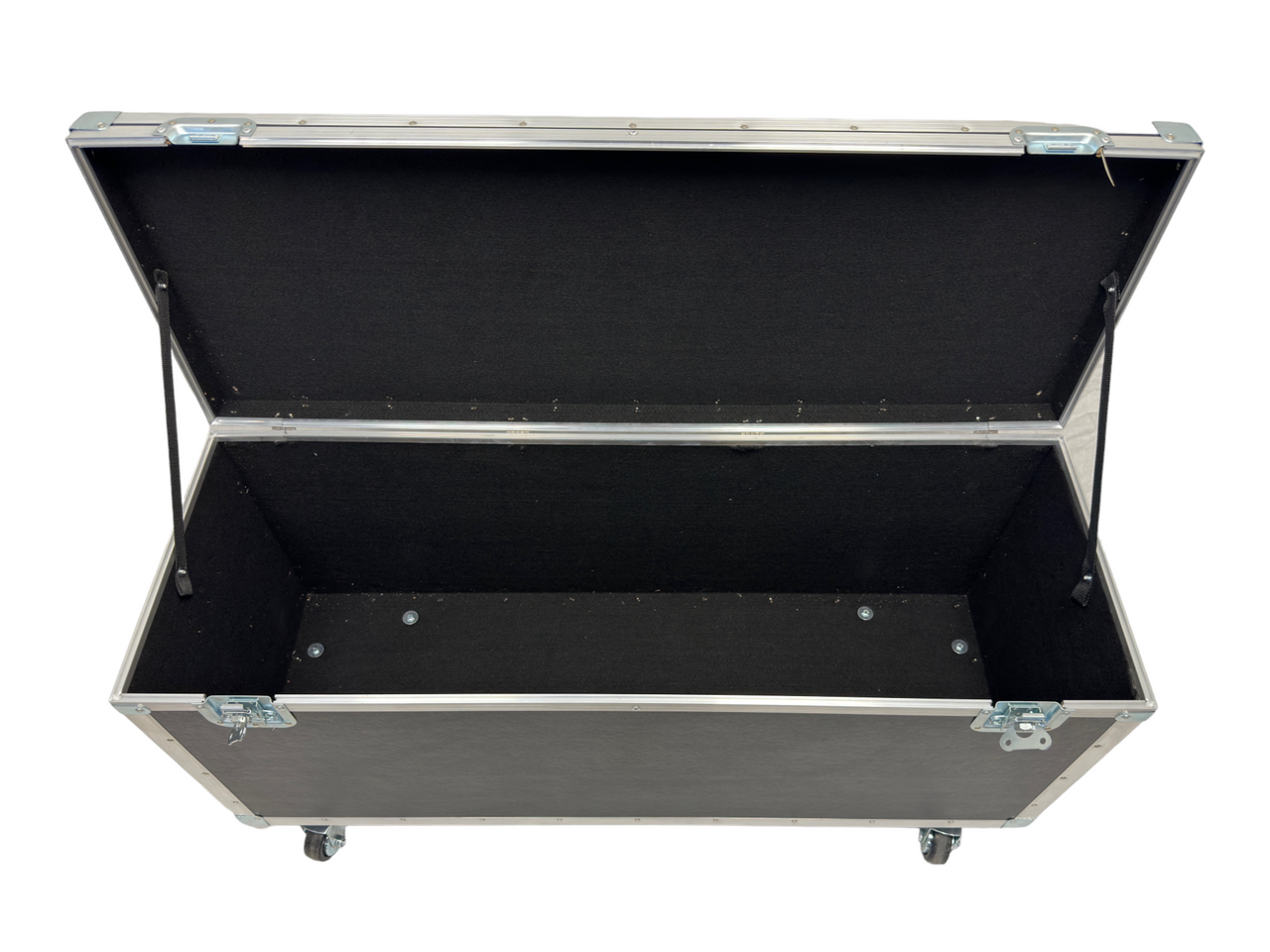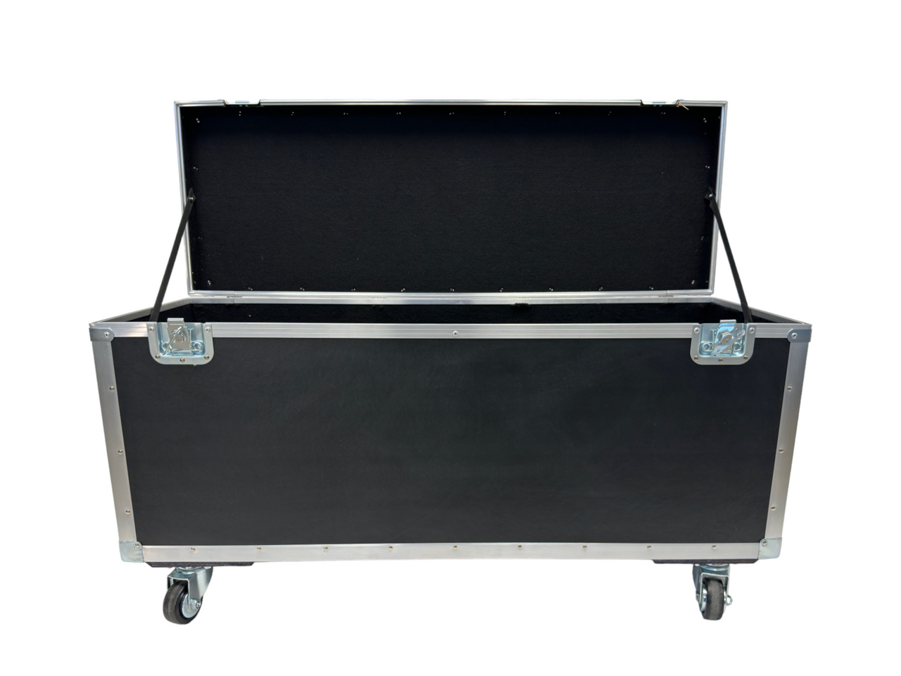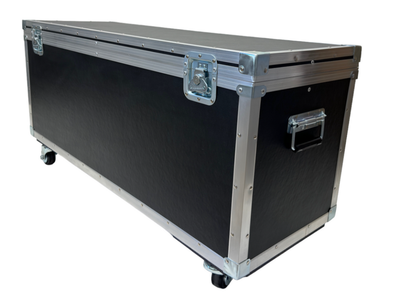 This Medium Duty 1/4" ATA Shipping & Supply Trunk w/Wheels - Carpet Lined Interior is constructed of medium duty 1/4" ply with a thick plastic laminate on the outside and a carpet lining inside to help protect any equipment that is transported. The case is surrounded with a heavy gauge aluminum extrusion and is machine split riveted together. Closure latches are recessed for protection against shearing off and the handles are spring loaded for easy lifting. There is also a 3" caster kit included (installation required.) The approx. inside dimensions of our shipping cases are: 44 1/2" x 15" x 18" high. We ship to Hawaii & Alaska as well as internationally, but can only provide free shipping to the lower 48 US states at this time. Please email, phone or text us for a quote for air, expedited, and international delivery options.