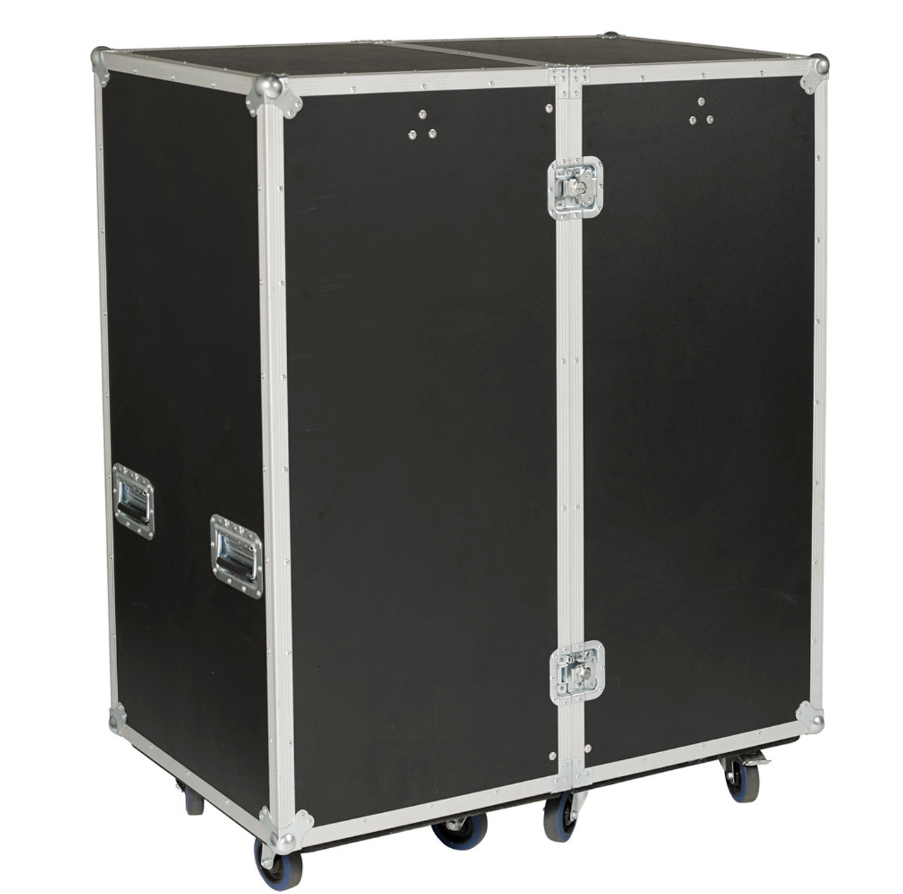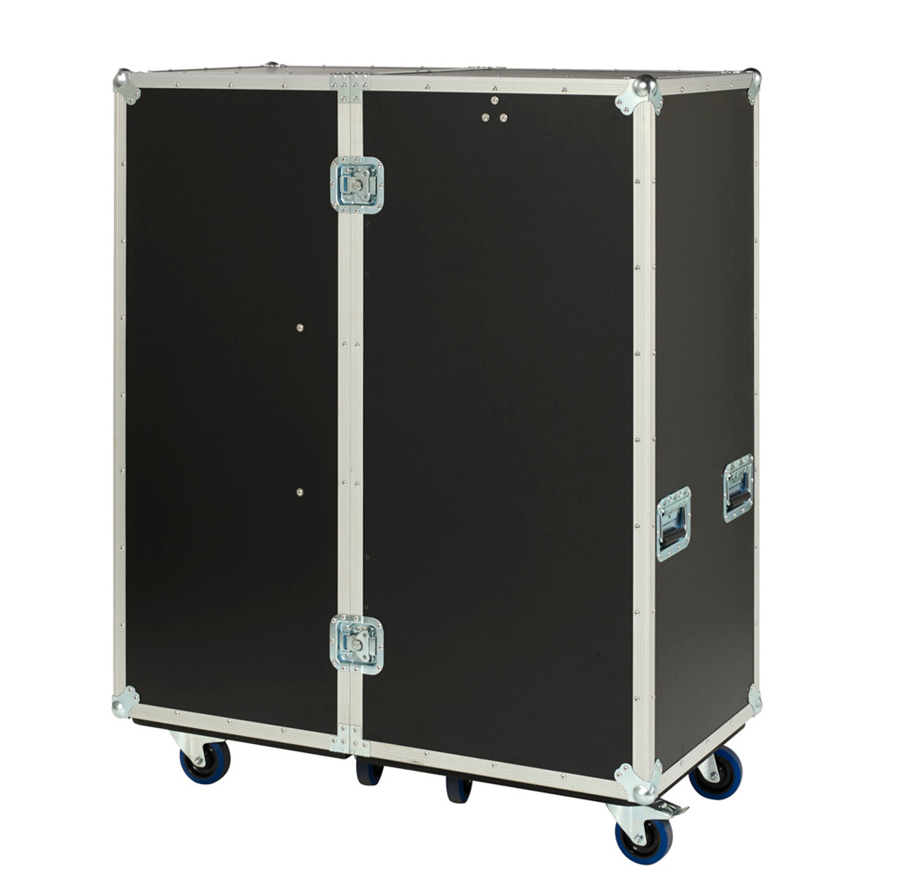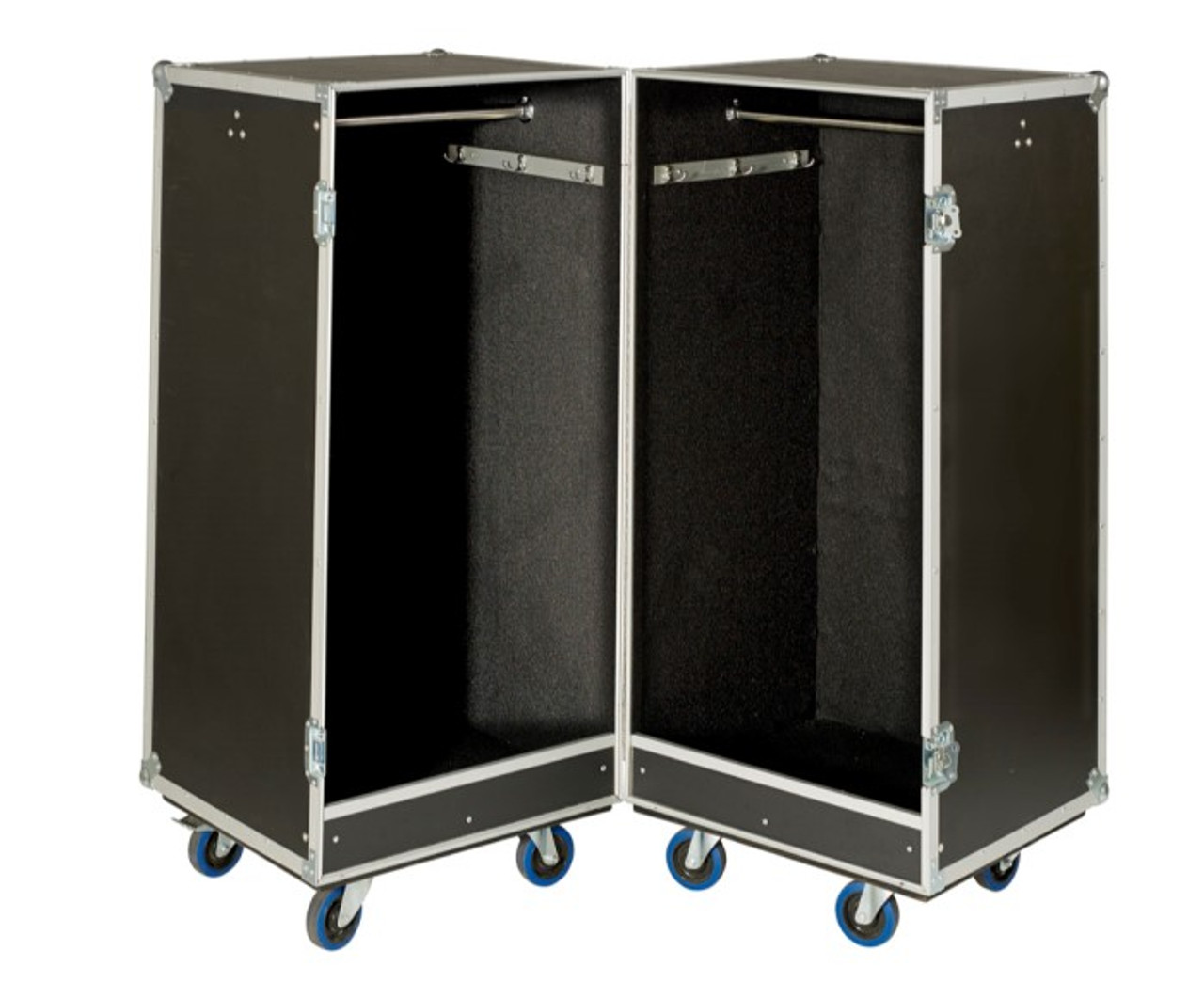 This ATA double sided wardrobe travel case is constructed of 3/8" plywood with a heavy weight black PVC laminate surrounded in aluminum extrusion and permanently machine split riveted together. It is then finished with two high quality spring loaded recessed catches and four strong recessed spring loaded handles. All hardware is plated for protection against corrosion. The interior is completely carpet lined for protection of your belongings. Shipping includes delivery on the truck to your curb/dock and does not include any "liftgate" fees for unloading. We ship to Hawaii & Alaska as well as internationally, but can only provide free shipping to the lower 48 US states at this time. Please email, phone or text us for a quote for air, expedited, and international delivery options.