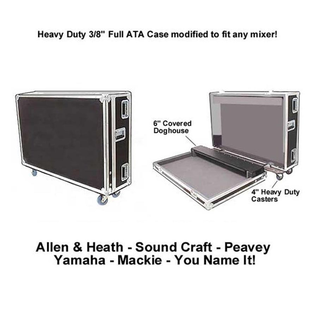 - Mixer Case With Doghouse and Casters comes w/ 3/8" plywood. Available in 1/2" Ply option