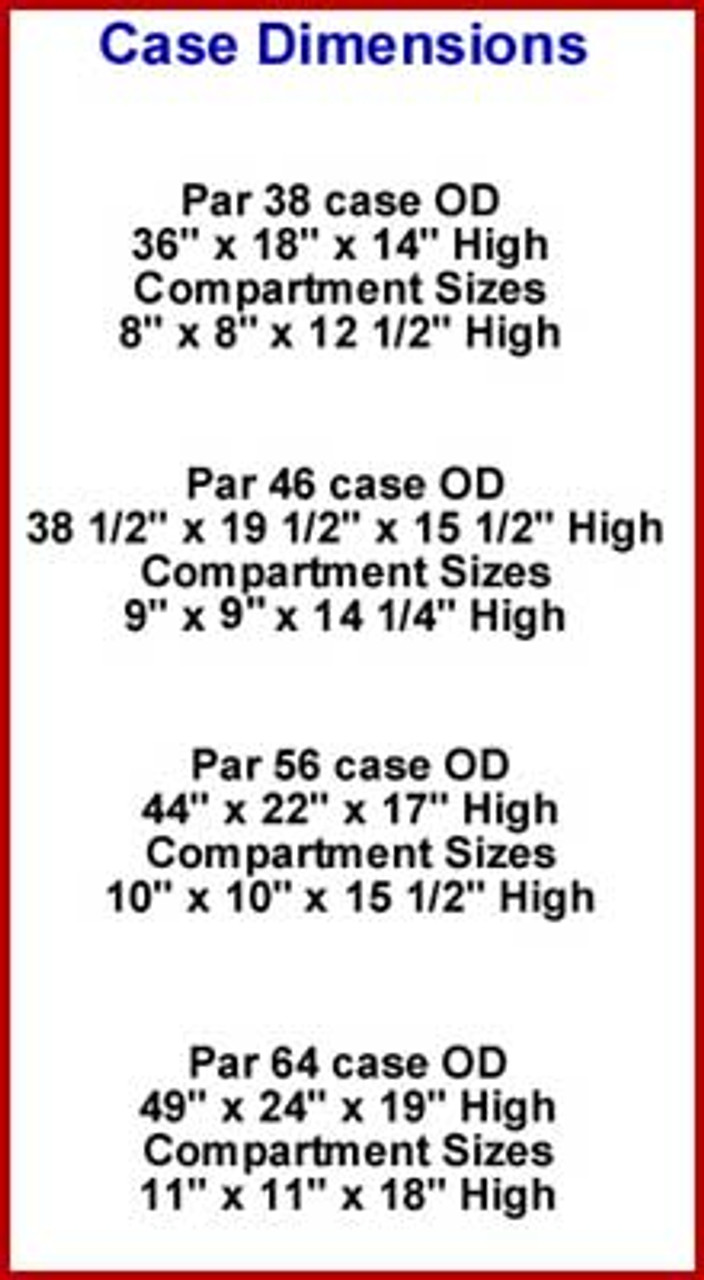 - Outside Dimensions (56 case): 44" x 22" x 17" High, Compartments: 10" x 10" x 15 1/2" High