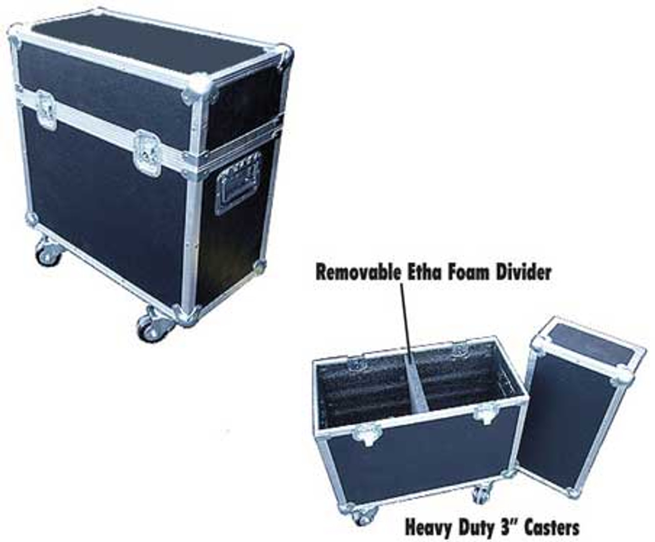 These specially constructed lighting cases and scanner cases are part of the Roadie Series of ATA Cases, and are made to provide important protection for your equipment. The solid construction and durable materials ensures long life and makes the lighting cases well suited for travel and transport. The lighting cases come with 3" casters for easy portability, and a removable foam divider so that you can easily fit different sized equipment. This case can be used for Martin MX1, MX4American DJ ACCU 250 SCAN & SCAN 250, and more. We ship to Hawaii & Alaska as well as internationally, but can only provide free shipping to the lower 48 US states at this time. Please email, phone or text us for a quote for air, expedited, and international delivery options.