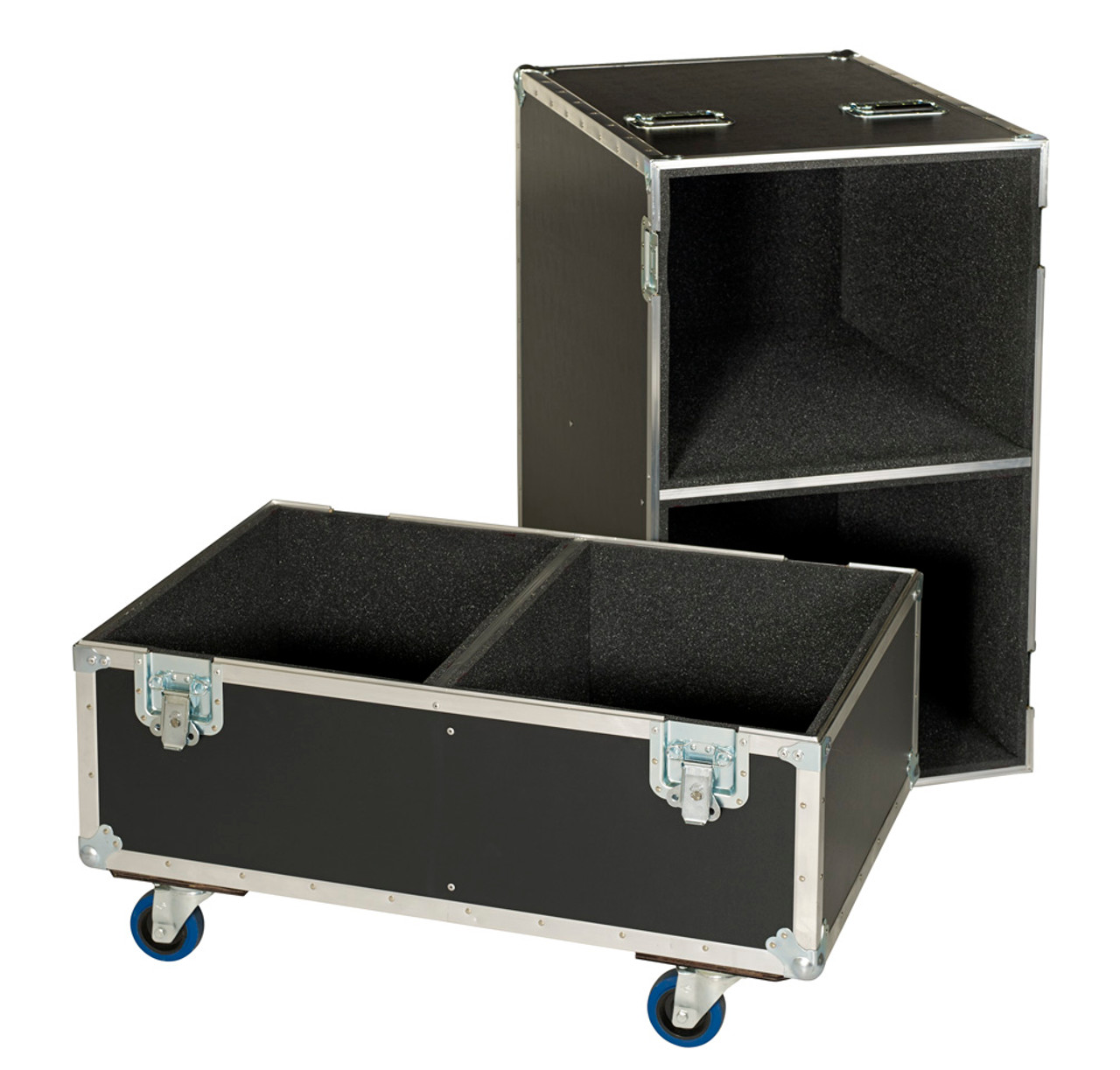Keep your speakers safe with these specially designed custom cases. Perfect for speakers of all models and sizes, we can custom build speaker cases according to the measurements of your speaker sets, providing you with the perfect fit and protection so that they can be shipped and transported without being damaged. The speaker cabinet cases feature a foam lined interior and casters, and are designed with a single partition to keep the speakers separated and also help you save money on construction costs. The heavy duty version of these speaker cases can be made in a variety of configurations - single cases - 2 in 1 cases - 3 in 1 cases - 4 in 1 cases etc. Due to this product's large size it is subject to a shipping oversized charge. Please see more details under Shipping - Warrantee - Returns. Please keep in mind roadcasesusa is still paying the bulk of the shipping charges.