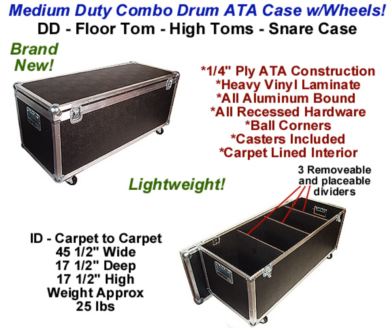 DD - Floor Tom, High Toms, & Snare Case - Interior Dimensions: 45-1/2" x 17-1/2" x 17-1/2"