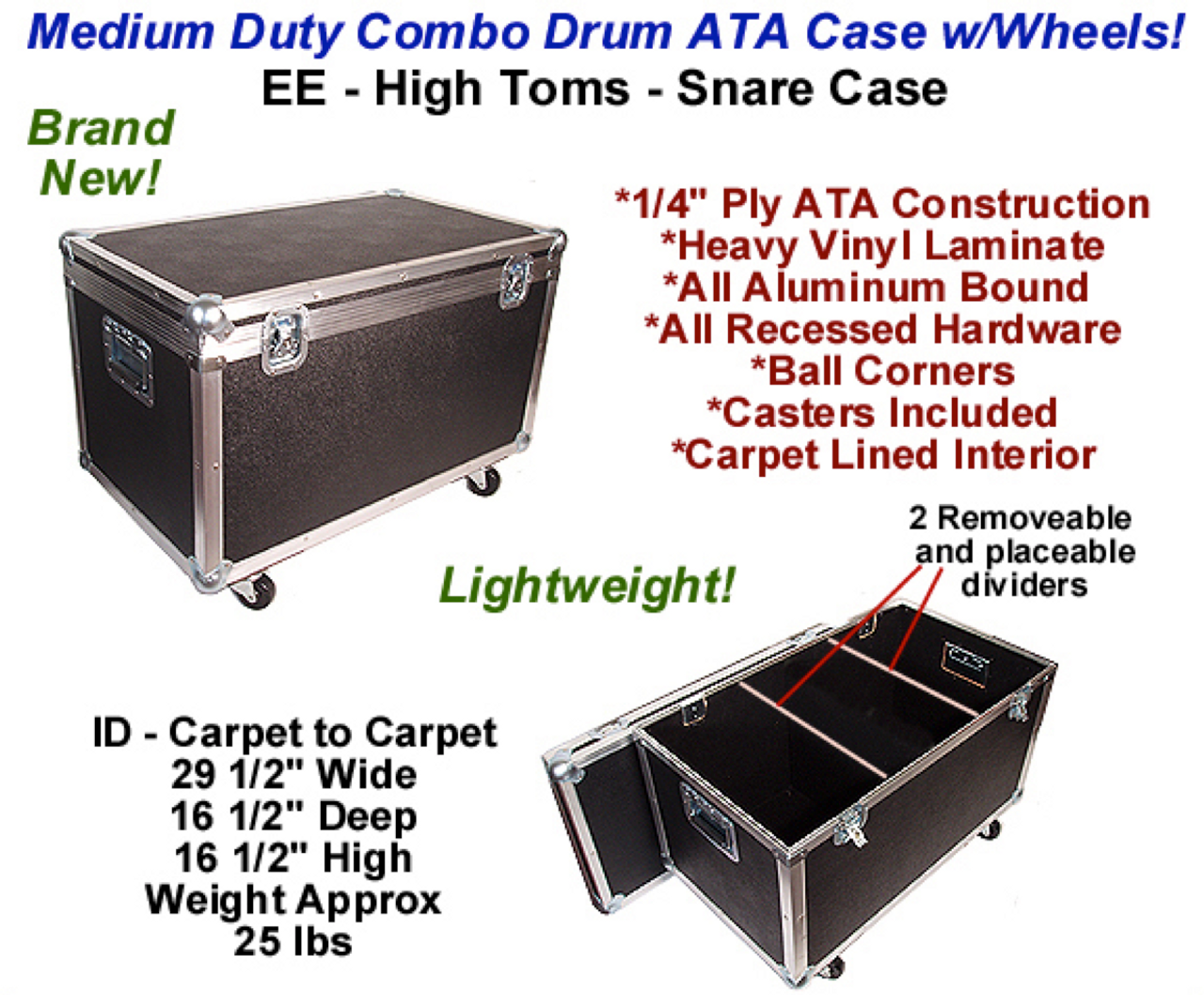 EE - High Toms & Snare Case - Interior Dimensions: 29-1/2" x 16-1/2" x 16-1/2"
