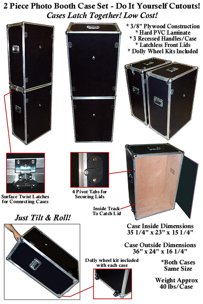 I have a Entertainment company that offers Dj and Photo Booth service, I used a table with a computer and printer before this. The reason was that Photo Booth cases where anywhere from $1800 to $3200 dollars and I did not see the sense in spending that much money. I bought these from Road Cases USA and spent 2 hours on cutting the holes and it looks better then a $1800 dollar model i seen on ebay. To improve your business and save money do yourself a favor and buy these cases.