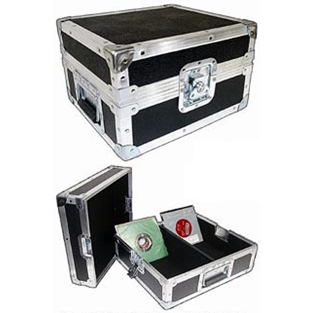 | | The case is constructed of 1/4" plywood with a heavy black vinyl laminate on the face and a black carpet lining interior to protect your 45's against shock and bangs that the case might take. The case also has all recessed hardware to prevent shearing off in transit. This double row 45 case holds about 200 45's. Approx OD: 17" x 14" x 8". |