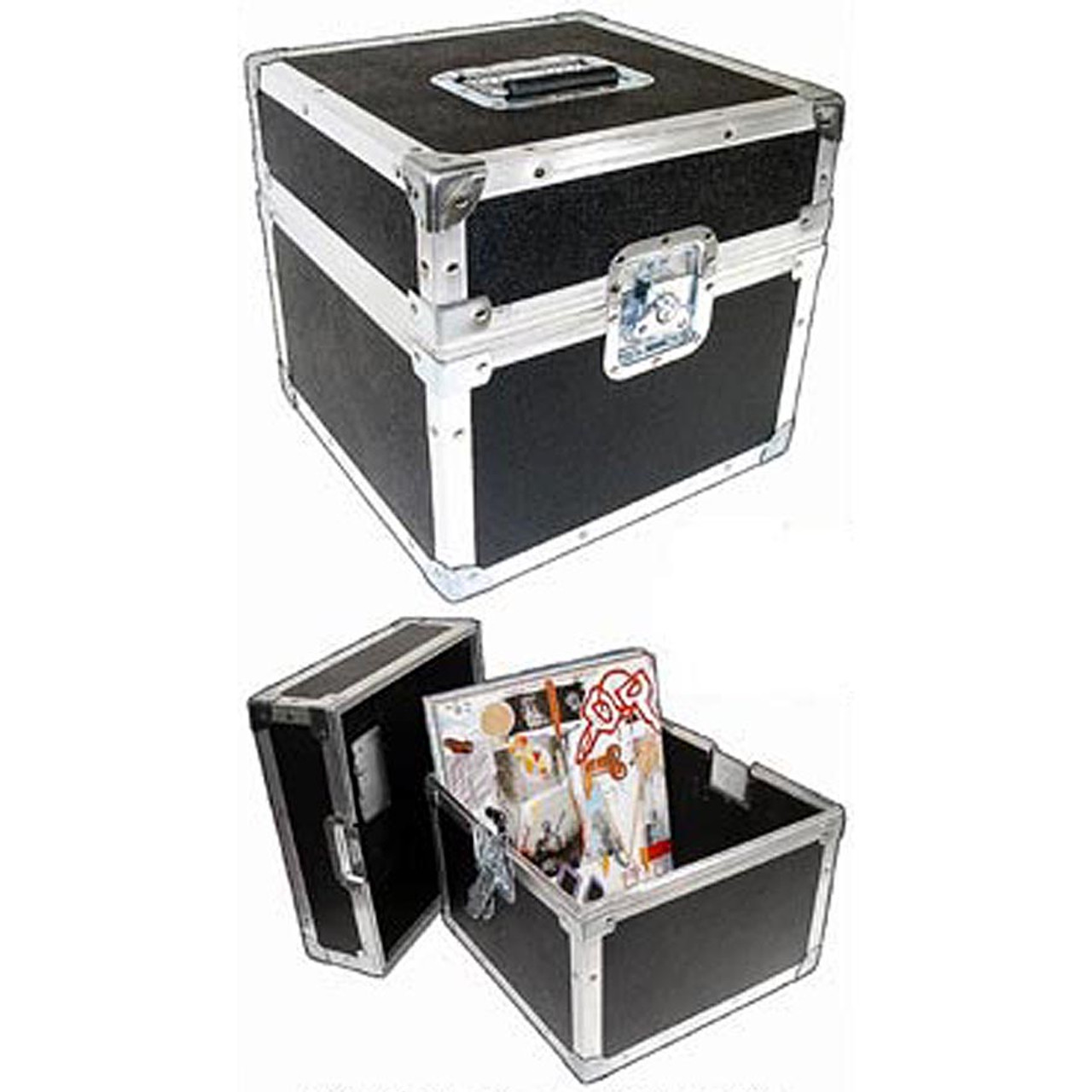 ![]() | The Album ATA case is constructed of 1/4" plywood with a heavy black vinyl laminate on the face and a black carpet lining interior to protect your albums against shock and bangs that the case might take. The case also has all recessed hardware to prevent shearing off in transit. This 14" album case holds about 100 albums. Approx OD: 14" x 14" x 14". |