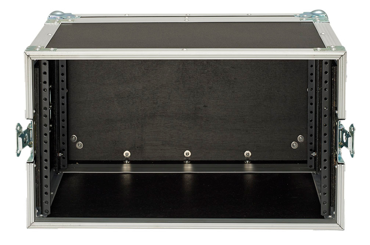 Our classic Signature Series 5 space (5u) 12 inch deep rack case is made to ATA spec with 3/8" ply (perfect for flying / shipping) and heavy duty hardware including rear rails and mounting bolts for your equipment. The exterior has a thick PVC plastic laminate and is riveted with heavy gauge aluminum extrusions throughout. It features all large recessed hardware and large steel ball corners. Dolly wheels and telescoping handle available as an option.