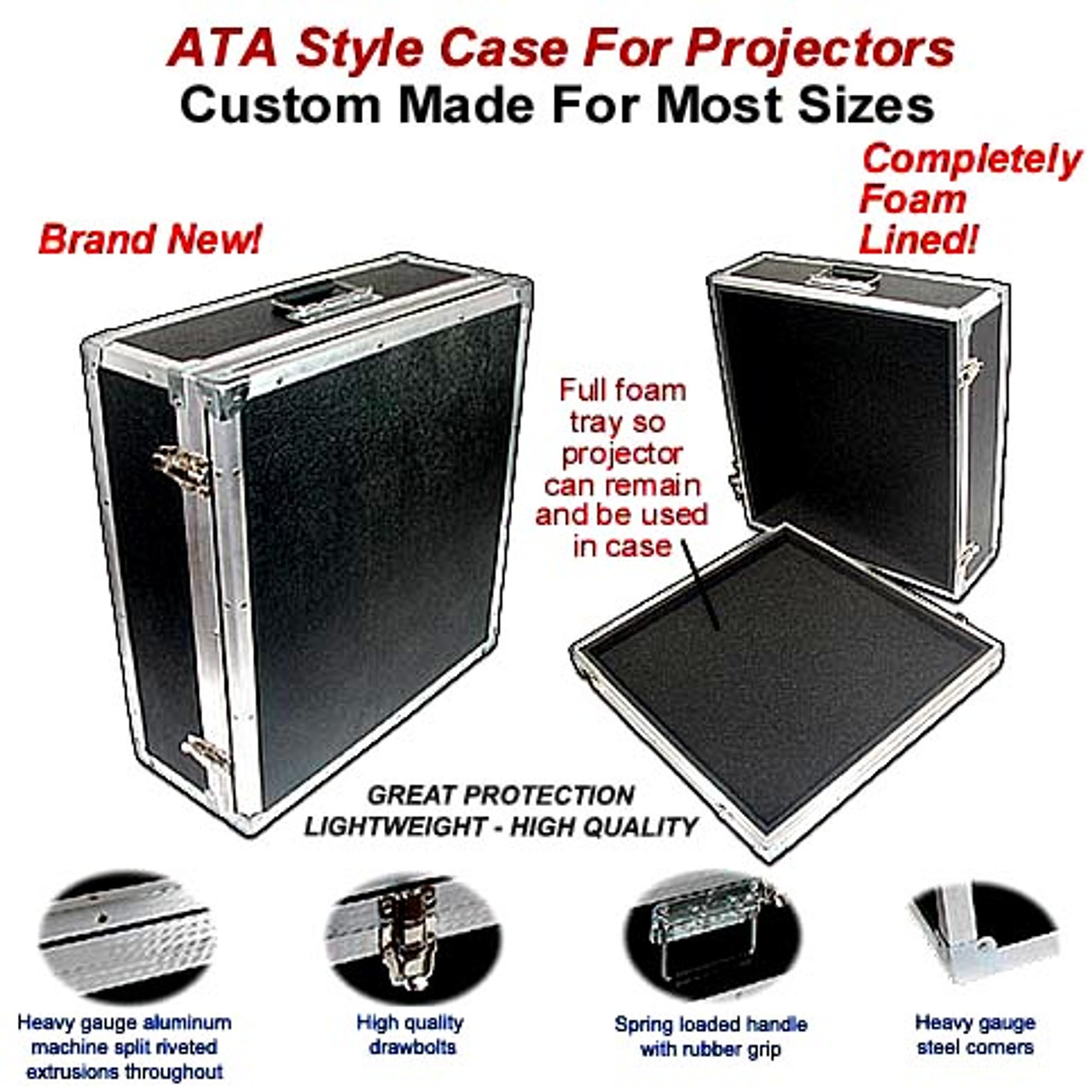If you don't see your model listed simply provide us with your dimensions in the fields above and we will custom build a case to your specs. These cases are constructed out of 1/4" plywood with a heavy nubtex laminate on the outside and completely foam lined inside. The perimeter is completely edged with aluminum bindings and valences permanently riveted throughout. High quality surface mounted hardware is used to finish the case. We ship to Hawaii & Alaska as well as internationally, but can only provide free shipping to the lower 48 US states at this time. Please email, phone or text us for a quote for air, expedited, and international delivery options.