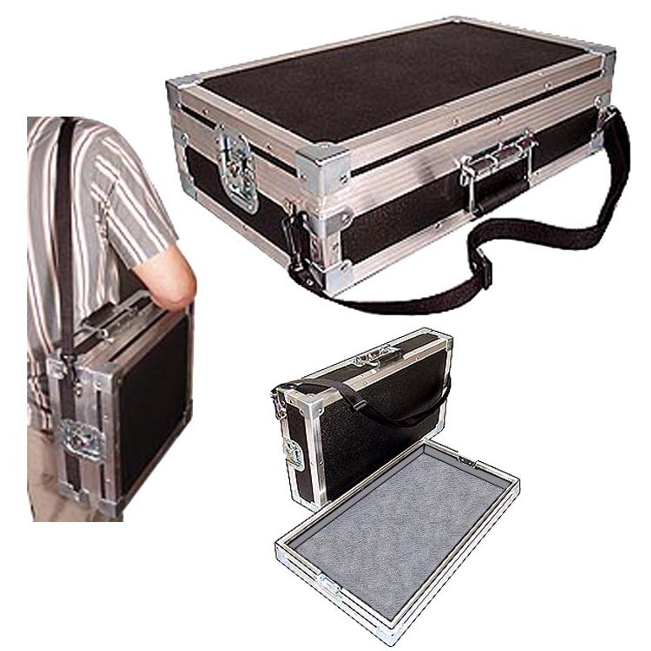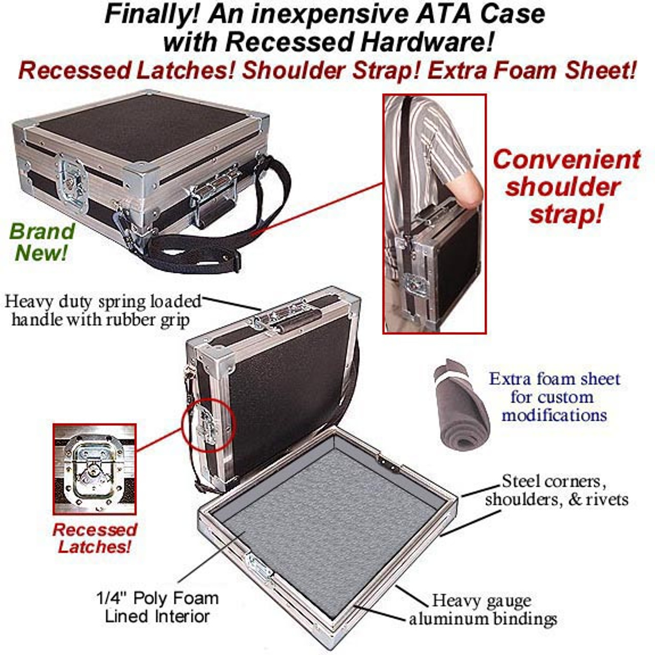 These ¼” plywood ATA projector "over the shoulder" cases feature heavy nubtex laminate on the outside and a completely poly foam lined inside. The perimeter is completely edged with aluminum bindings and valences are permanently riveted throughout. High quality surface mounted hardware is used to finish the case. A handy should strap is supplied for your convenience. We ship to Hawaii & Alaska as well as internationally, but can only provide free shipping to the lower 48 US states at this time. Please email, phone or text us for a quote for air, expedited, and international delivery options.