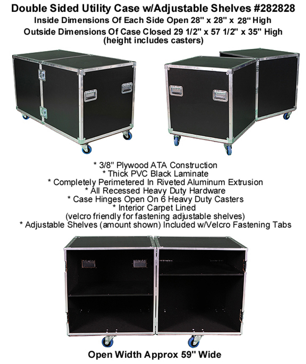 - Case Hinges Open On 6 Heavy Duty Casters