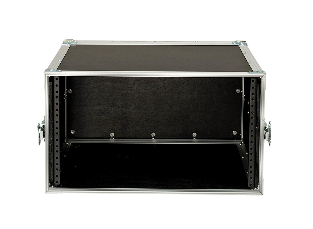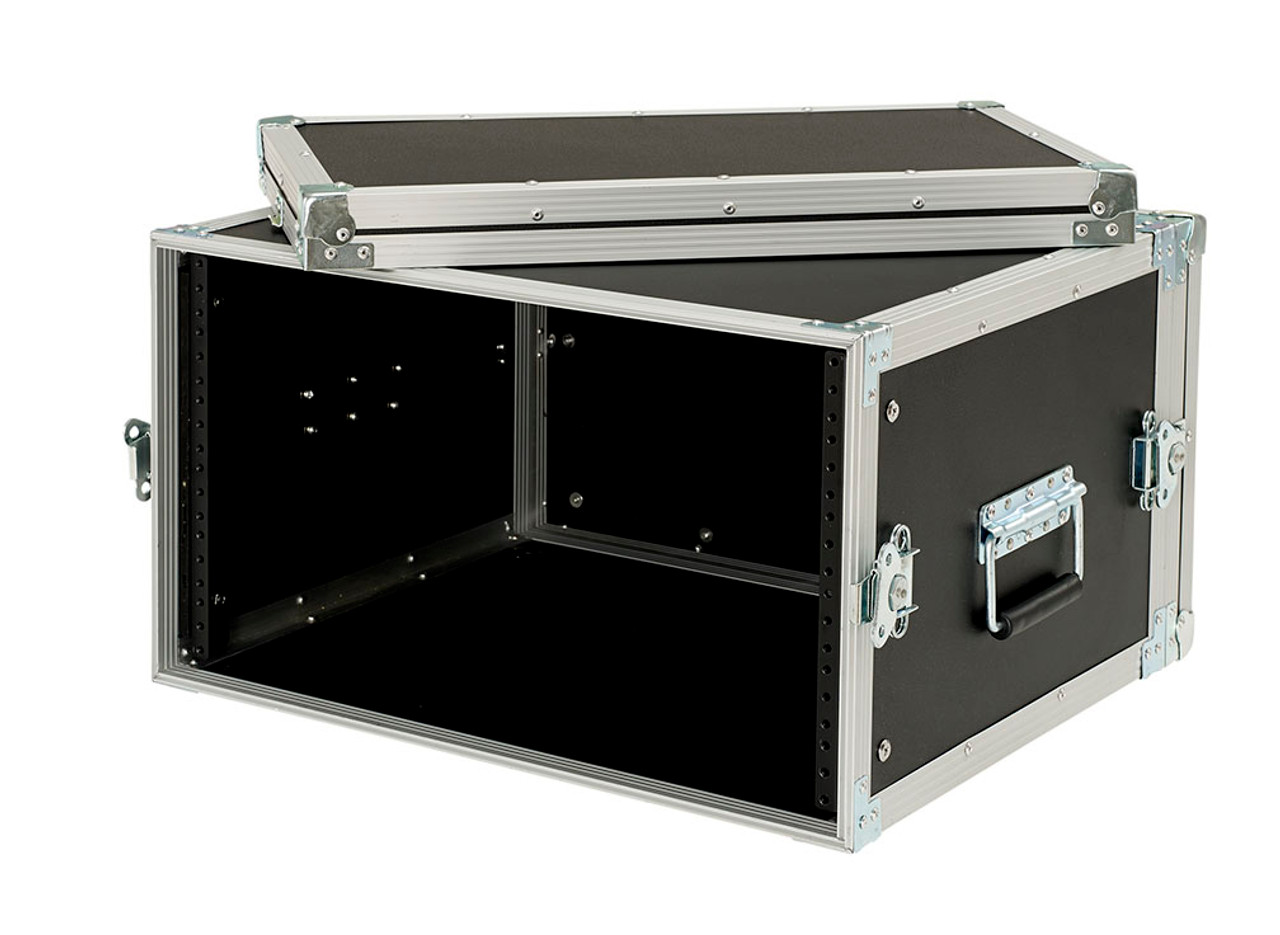 This Economy Series rack case is 16" deep with 6 spaces. Our economy series is a cost effective, lightweight ATA case with surface mounted hardware, flat steel corners, hard black laminate and 1/4" plywood walls. Our economy series is great for local gigging or storage. Dolly wheels and telescoping handle available as an option.