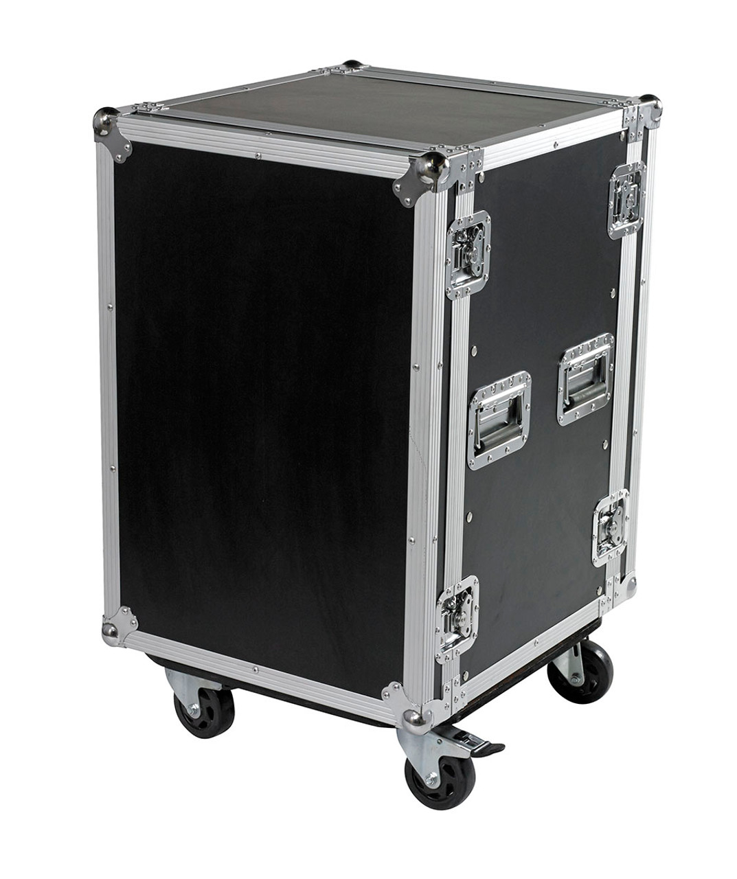 Our classic Signature Series 16 space (16u) 18 inch deep rack mount case with optional wheels is made to ATA spec with 3/8" ply (perfect for flying / shipping) and heavy duty hardware including rear rails and mounting bolts for your equipment. The exterior has a thick PVC plastic laminate and is riveted with heavy gauge aluminum extrusions throughout. It features all large recessed hardware and large steel ball corners. Optional 4 heavy duty casters (with 2 locking) allow you to move your gear with ease. Heavy Duty 1/2" Ply for max protection also available for max protection.